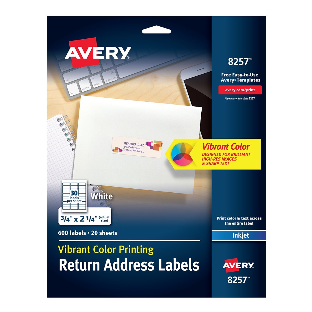 Avery® Copier Address Labels - 1 3/8" Width x 2 13/16" Length - Permanent Adhesive - Rectangle - White - Paper - 24 / Sheet - 100 Total Sheets - 2400 ...